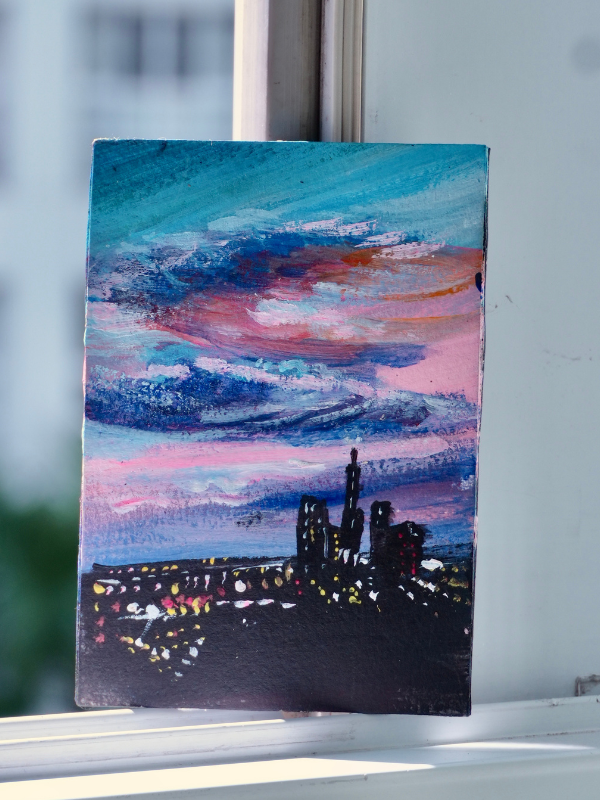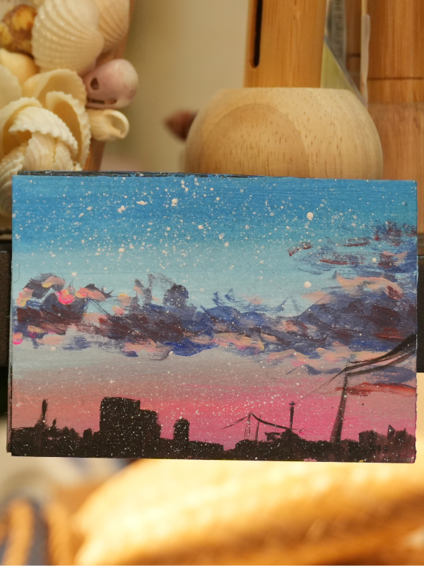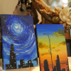 What makes this product special is its unique, one-of-a-kind nature. Each piece is handcrafted, imbued with the artist’s own emotions. Even when depicting the familiar skyline of Saigon’s high-rise buildings, viewers can feel the shifting rhythm of urban life in every brushstroke—through various palettes, from a star-studded night sky and a brilliant sunset, to hazy evening clouds.