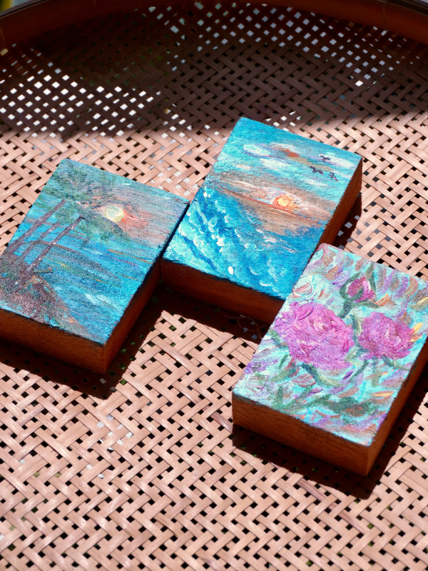 Xa Xi wood, known for its gentle aroma, is treated to provide a smooth painting surface. Each piece is entirely hand-painted, resulting in unique, one-of-a-kind designs.