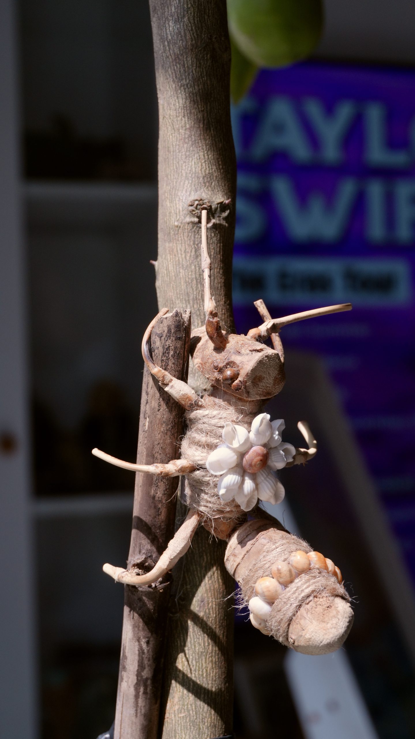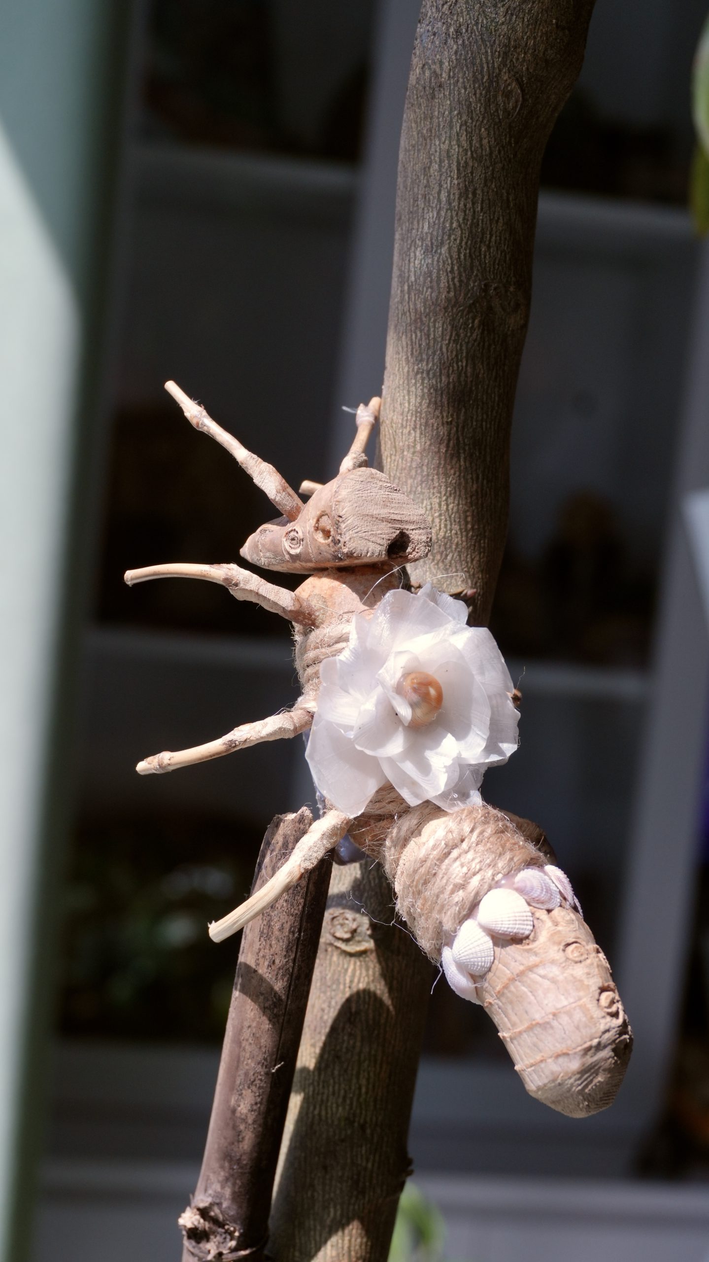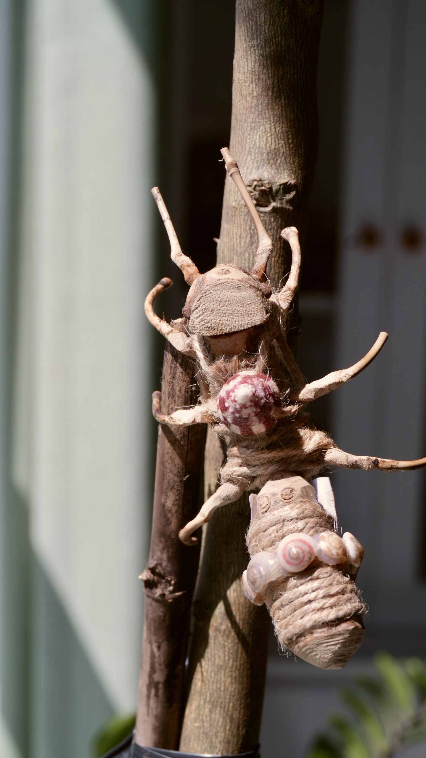 - Materials: Aged bamboo root, natural seashells/conches, jute twine, and a magnet.