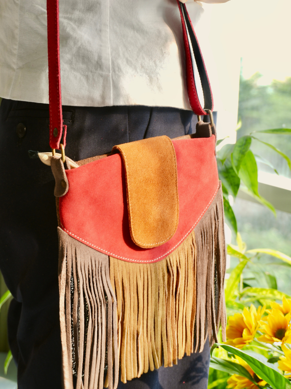 This unique Suede Fringe Bag is handcrafted from high-quality suede patches salvaged from a small, closed workshop, honoring the artisans’ labor.