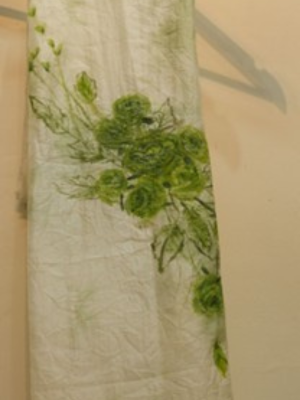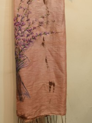 - Nền tranh vẽ tay bằng màu acrylic trên vải bố.