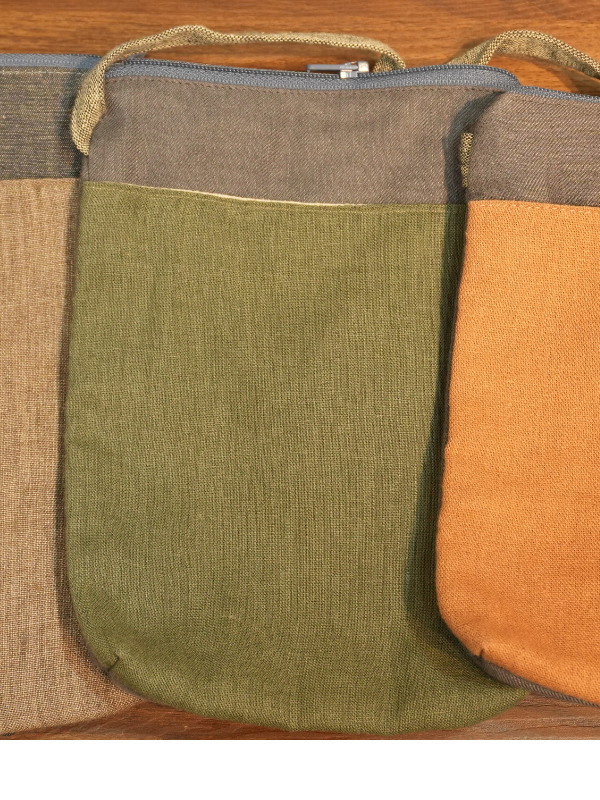 Túi được may hoàn toàn thủ công từ vải linen tự nhiên, chất liệu thân thiện với môi trường, bền chắc và thoáng nhẹ. Những mảng vải được ghép khéo léo từ vải vụn, mang lại cảm giác mộc mạc, gần gũi nhưng vẫn toát lên vẻ hiện đại. Mỗi chiếc túi là một phiên bản độc bản, không trùng lặp, thể hiện dấu ấn riêng của người sở hữu.