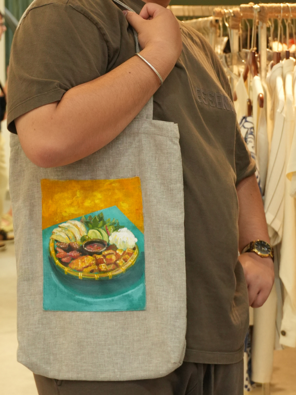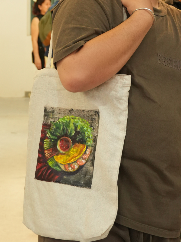 This Hand-Painted Linen Bag is a unique, one-of-a-kind accessory blending natural linen fabric with individual artistry.
